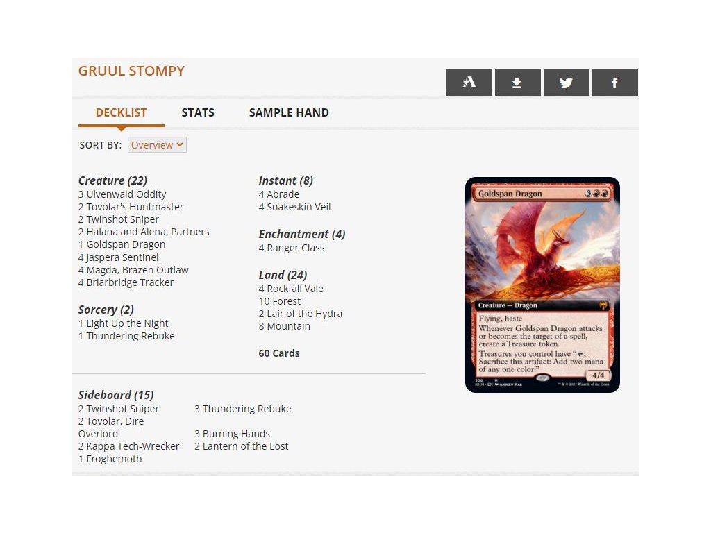 Magic the Gathering Challenger Deck 2022 - Gruul Stompy je speciální turnajový balíček na formát standard, který je po vybalení připraven k okamžité hře. Tento balíček si můžete vzít na FNM nebo lokální turnaj, protože kromě hlavního balíčku obsahuje i kompletní sideboard.